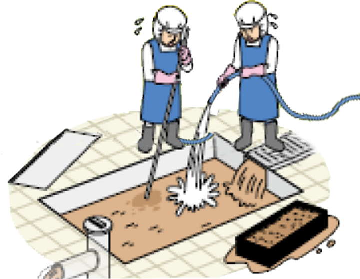 水を大量に使う / 排水溝に押し流す