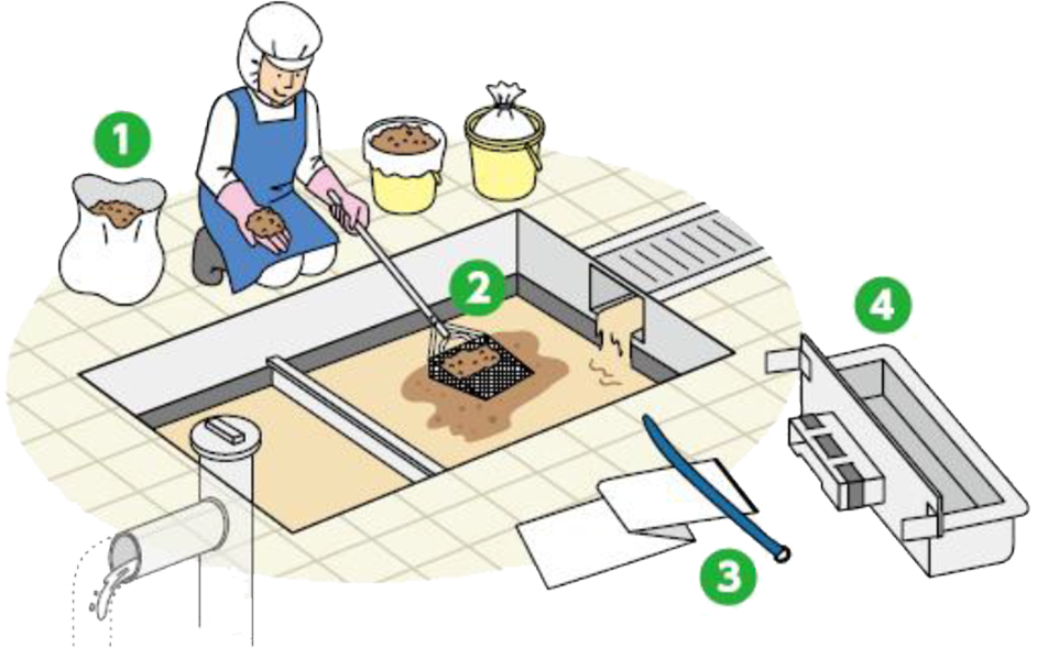 現場での確実回収方法で、 配管詰まり・水質汚濁を根本的に防止。